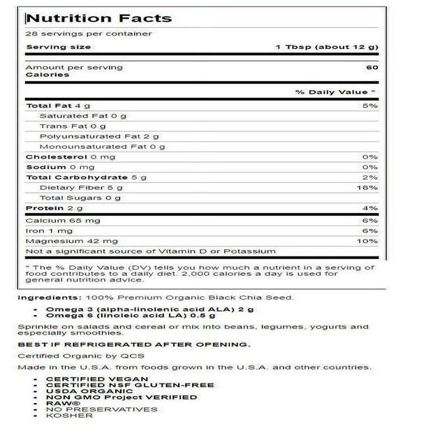 Garden of Life - Super Omega-3 100% Organic Chia Seed - 12 oz. (340g) Garden of Life Super Omega-3 100% Organic Chia Seed differs from most other top-selling chia products on the market because it is dual certified, which means that it is both Certified USDA Organic and Non-GMO Project Verified. Plus, it is grown sustainably, and supports USA farms.
