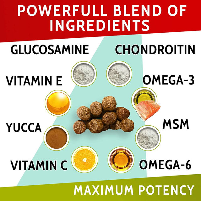 Glucosamine Dog Treats for Picky Eaters - Joint Supplement W/Chondroitin, MSM, Omega-3 - Joint Pain Relief - Advanced Formula - Chicken Flavor - Made in USA