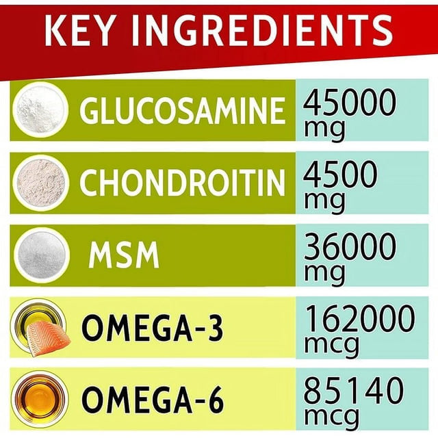 - Ultimate Hip and Joint Supplement - rich with Omega-3 Fish Oil, Chondroitin, MSM and Yucca, you are getting comprehensive mobility treatment to support strong bones, healthy hip and joints, lubricate joints, relieve inflammation and pain, increase dog's mobility and energy.