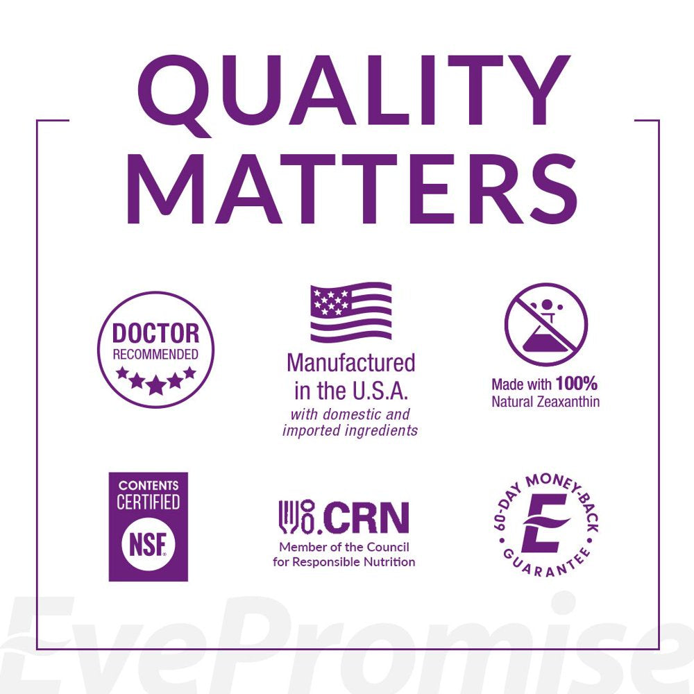 - Manufactured in the USA with domestic and imported ingredients - EyePromise sources natural ingredients that have no preservatives, and our Omega-3 fish oil meets P65 and USP requirements. We've done the work to source responsibly and openly and certify our formulations, so you can be confident EyePromise products are supporting your eye health