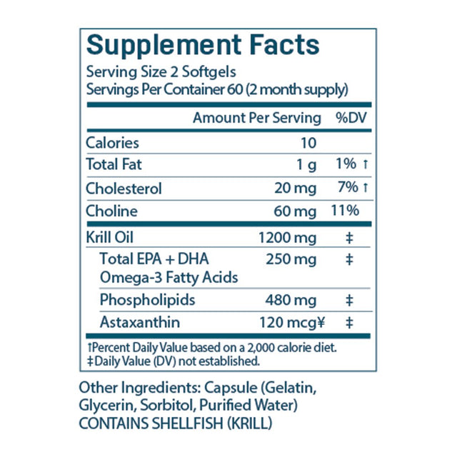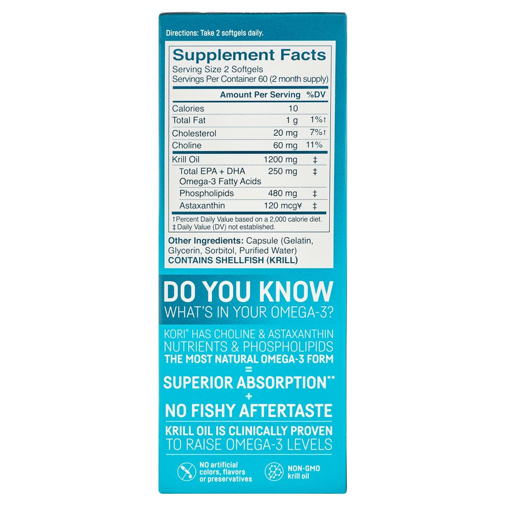 *These statements have not been evaluated by the Food and Drug Administration. This product is not intended to diagnose, treat, cure, or prevent any disease.**When taken at the same Omega-3 EPA & DHA levels as fish oil. This product contains 120 softgels, each with 600mg of Kori Krill Oil, ensuring a sufficient supply for consistent use.