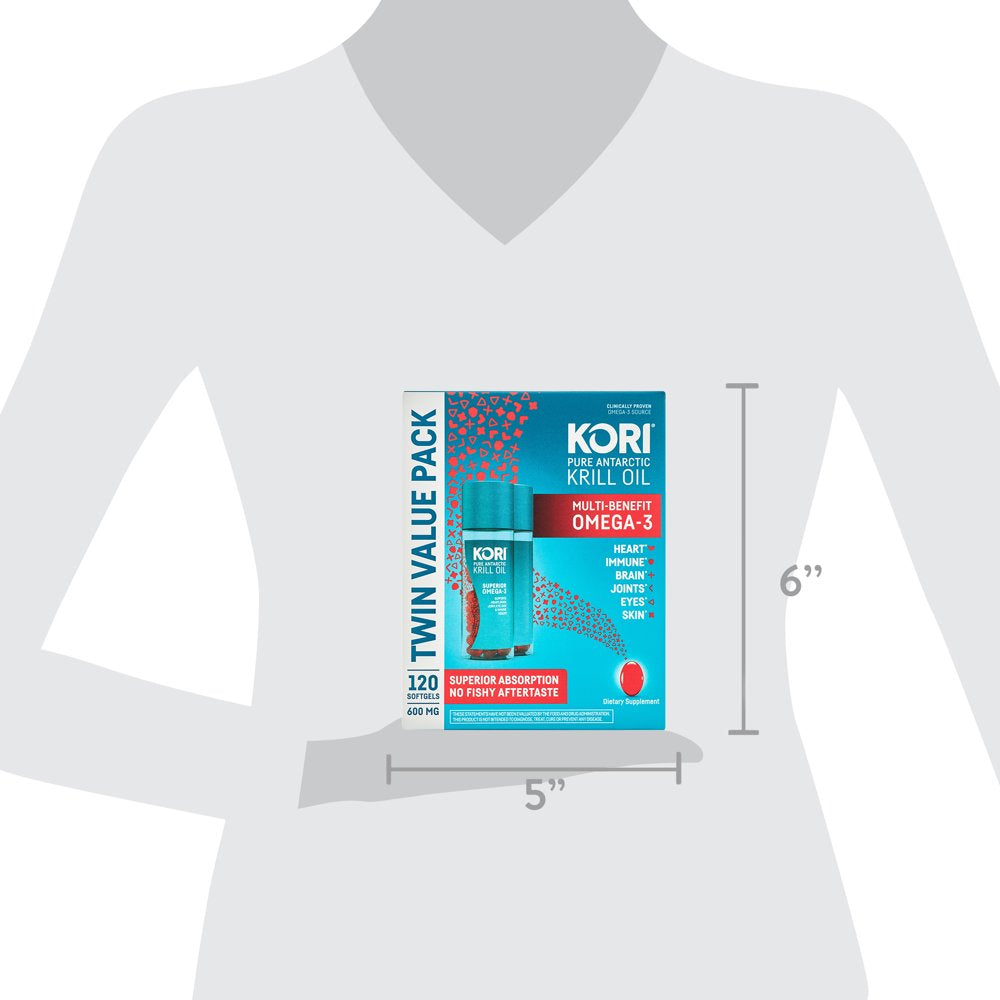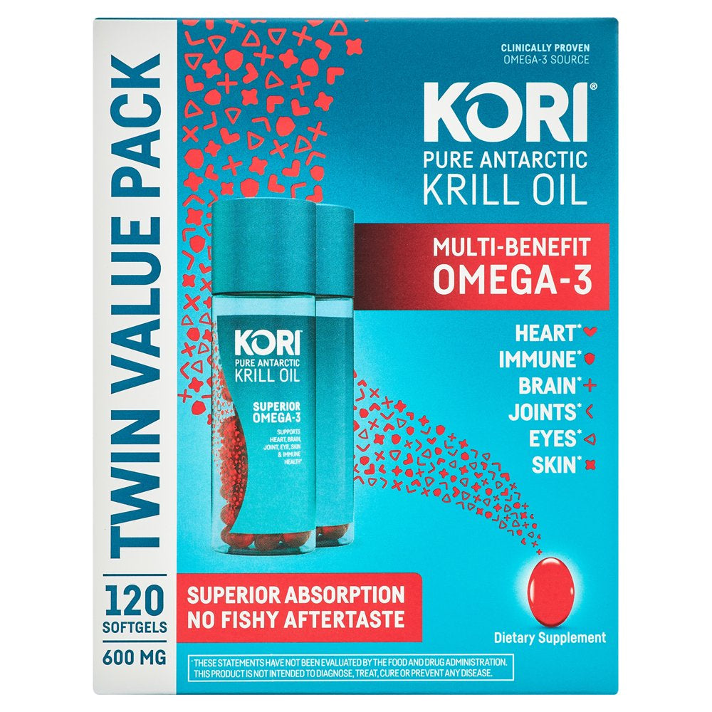 Kori Krill Superior Absorption Vs Fish Oil, Omega-3 Supplement for Heart, Brain, Joint, Eye, Skin & Immune Health, Softgels,120 Count, Twin Pack