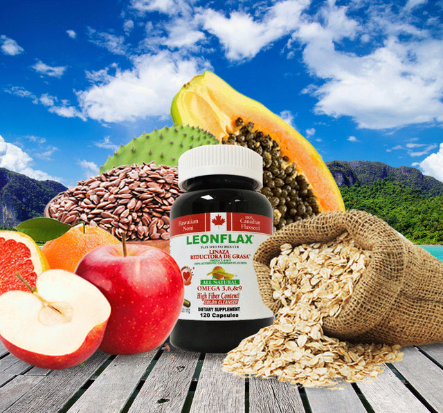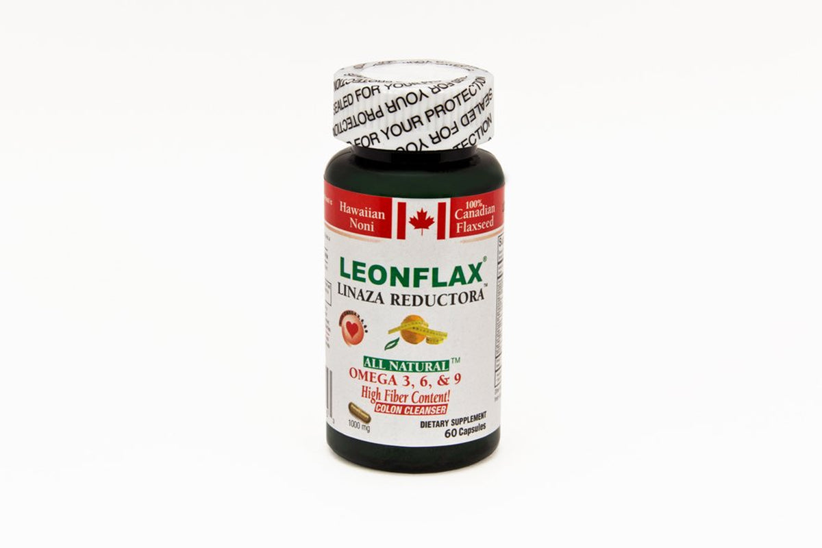 LEONFLAX FORMULA IS 100% NATURAL CONVENIENTLY PREPARED IN EASY TO TAKE CAPSULES 60 CT. THIS FORMULA CONTAINS: CANADIAN FLAX SEED. WHEAT BRAN, PERUVIAN MACCA, OAT BRAN, PSYLLIUM HUSK, MEXICAN NOPAL CACTUS, HAWAIIAN NONI, GRAPEFRUIT, APPLE, PINEAPPLE, ORANGE, PAPAYA, SENNA LEAF. HIGH FIBER CONTENT! WITH OMEGA 3, 6 & 9. AN EXCELLENT "FAT REDUCER" AND COLON CLEANSER. Leonflax is the only formula that contains wheat, oat bran, and psyllium ingredients that cleans the effects of intestinal mucus. Leonflax Naturally alleviates gastritis ulcers and nervous disturbances. Oat bran and wheat bran are high on fiber and help regulate appetite and helps lose weight. Oat bran cleans the arteries, burns fats and reduces cholesterol levels in the blood. Psyllium absorbs water and stimulates normal intestinal function. Leonflax contains 100 Canadian % harvested flax seed. Flax seed can be harvested anywhere in the world but Canadian flax seed, due to the colder temperature in the soil; contains more Omega 3, 6 and 9 fatty acids.