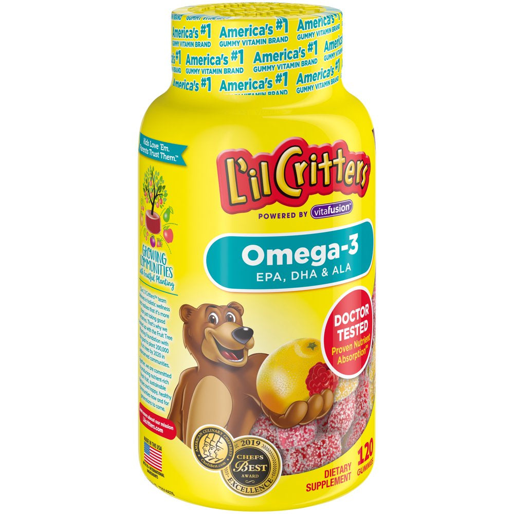 L'Il Critters Kids Omega-3 Gummy, 3 Fatty Acids, DHA, EPA and ALA. 120 Ct (60-120 Day Supply), Delicious Citrus Flavors (No Fishy Taste) from America'S Number One Kids Gummy Vitamin Brand