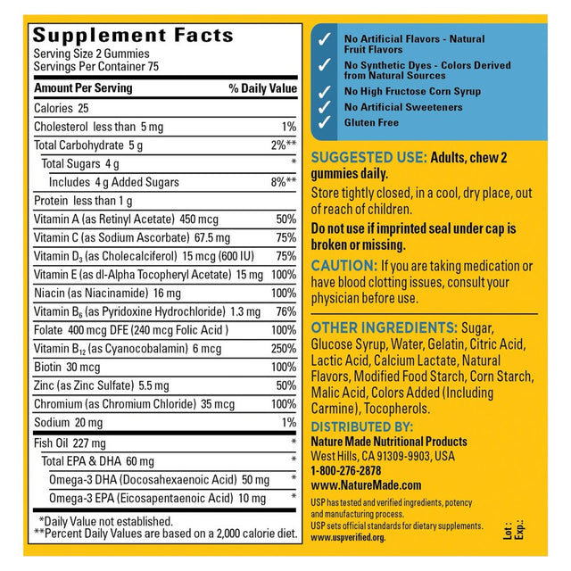 Nature Made Men'S Multivitamin + Omega-3 Gummies, 150 Count