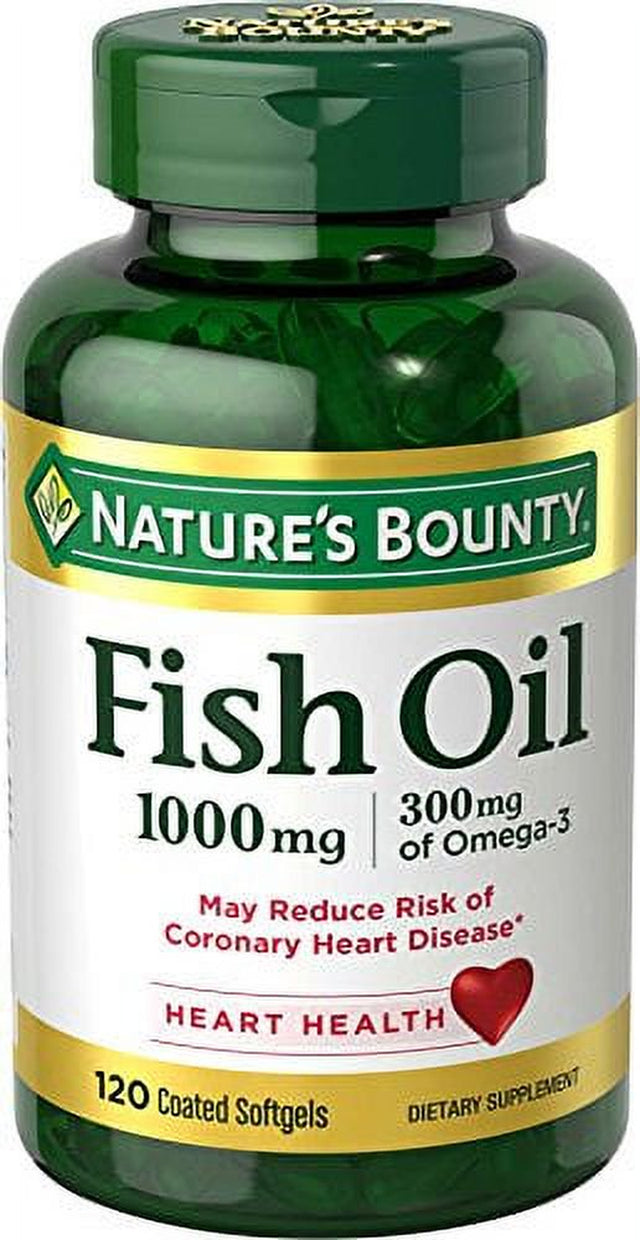 FOR YOUR HEART 120-count, 1000mg, 300mg of Omega-3 Fish Oil Softgels. Product Note: Exposure to heat or sunlight may lead to melting/damage of product. Hence customers are expected to be available during the product delivery ODOR FREE Nature’s Bounty Fish Oil Softgels are odorless and coated, so you can reap the benefits of your fish oil supplements in the morning without the fish burps. MERCURY-FREE Because they’re from the trusted vitamin experts at Nature’s Bounty, these high-quality Fish Oil Softgels are purified to eliminate mercury. PURITY IS OUR PRIORITY Nature’s Bounty is committed to safety and purity in all our supplements. Our Omega-3 Fish Oil Softgels contain no shellfish. They are non-GMO, gluten- and sugar-free, and contain no artificial colors or sweeteners. FROM THE TRUSTED WELLNESS EXPERTS Nature’s Bounty Fish Oil Softgels are a product of 50 years of dedication to quality, consistency and scientific research to make vitamins and nutritional supplements of unrivaled excellence. Packaging may vary due to redesign, same great product ingredients