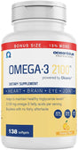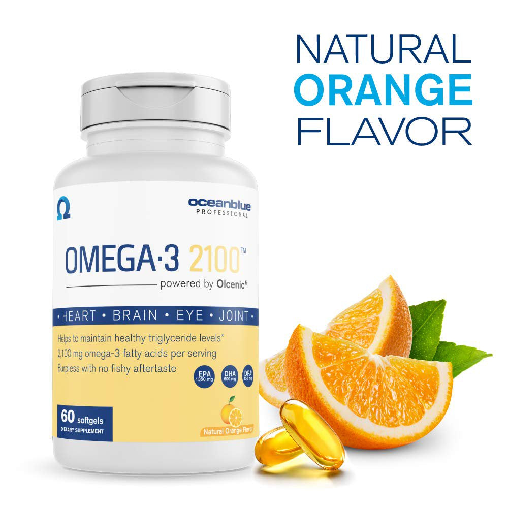 Ultimate-concentration omega-3 fish oil formula for targeted cardiovascular benefit and overall health support. Oceanblue Omega-3 2100 is a high-potency omega 3 fatty acid supplement with a high dose of DHA and EPA. A two-capsule serving of Omega-3 2100 contains 2,100 mg of omega-3 fatty acids, providing 1,350 mg of EPA and 600 mg of DHA - which is 3X stronger than standard fish oil products.