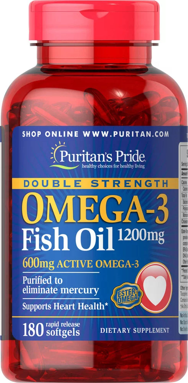 Puritan'S Pride Double Strength Omega-3 Fish Oil 1200 Mg 180 Softgels