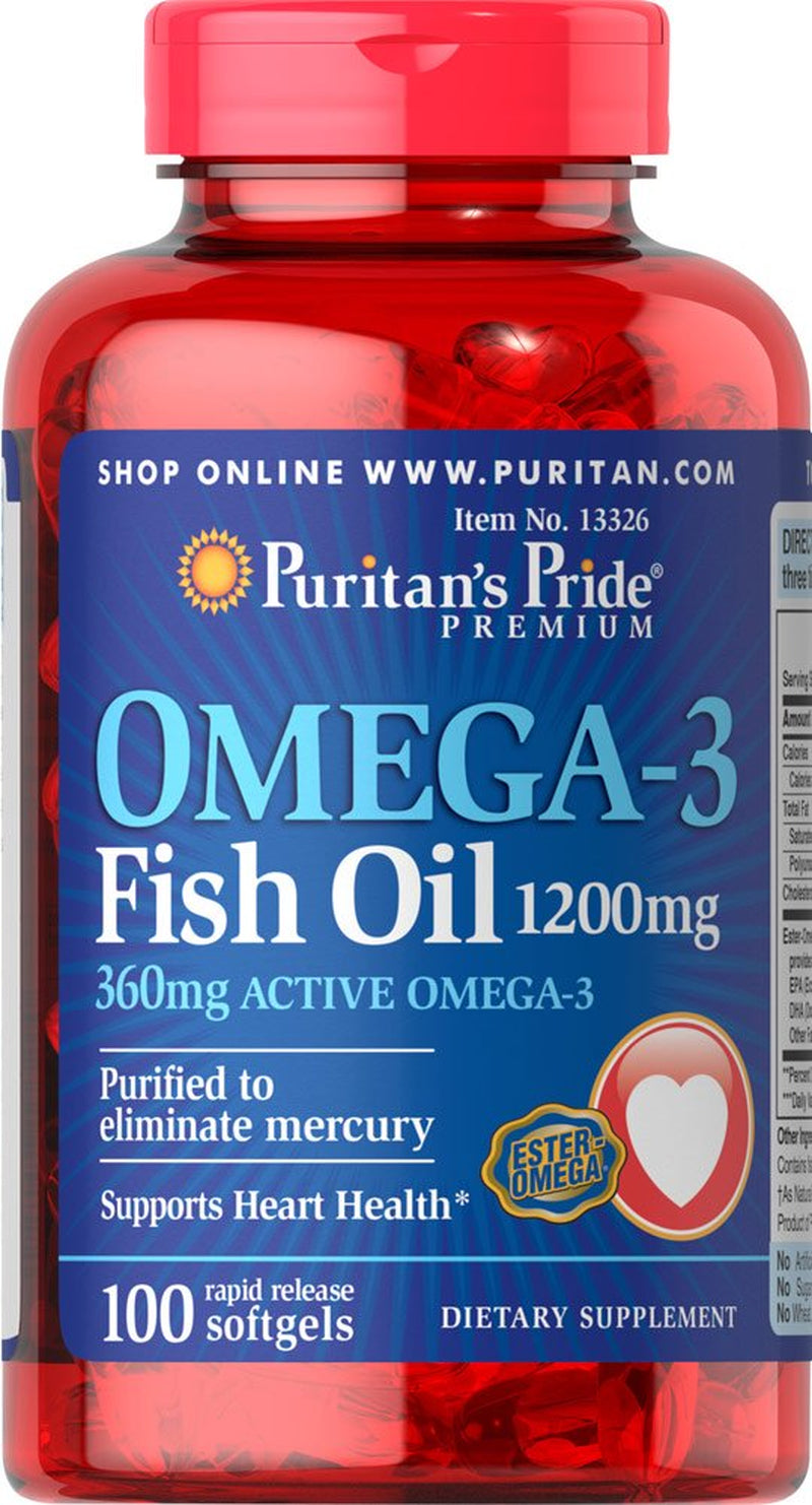 Puritan'S Pride Omega-3 Fish Oil 1200 Mg (360 Mg Active Omega-3) - 100 Softgels