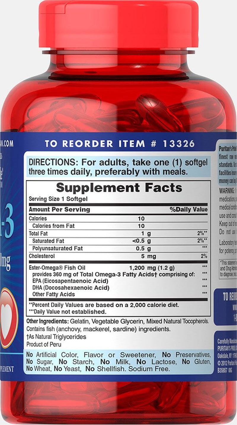 Puritan'S Pride Omega-3 Fish Oil 1200 Mg (360 Mg Active Omega-3) - 100 Softgels is backordered and will ship as soon as it is back in stock.