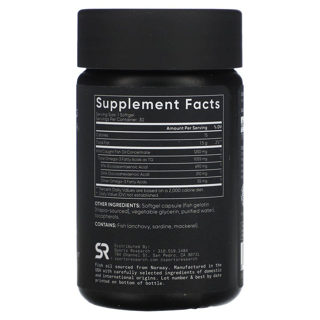 Sports Research Omega-3 Fish Oil, Triple Strength , 30 Softgels