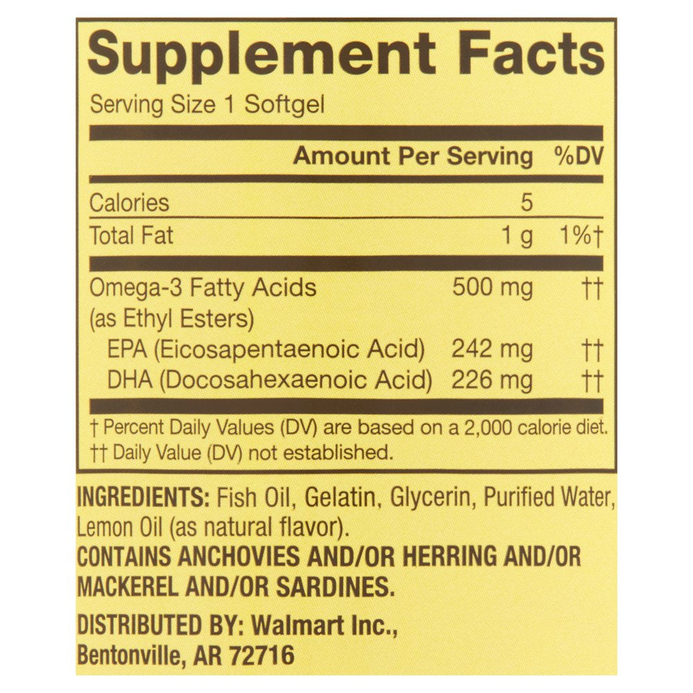 Our Spring Valley Daily Maintenance Omega-3 from Fish Oil Dietary Supplement, 500 mg is a daily maintenance supplement that may improve general and heart health, and may reduce the risk of coronary heart disease. This supplement contains no gluten, yeast, wheat, soy, milk or milk derivatives, lactose, sugar, artificial color, artificial flavor, or crustacean shellfish. The recommended dosage is 1 softgel per day, preferably with a meal. You can rest assured that our Spring Valley Daily Maintenance Omega-3 from Fish Oil Dietary Supplement, 500 mg is produced with strict quality guidelines and is backed by our quality guarantee.