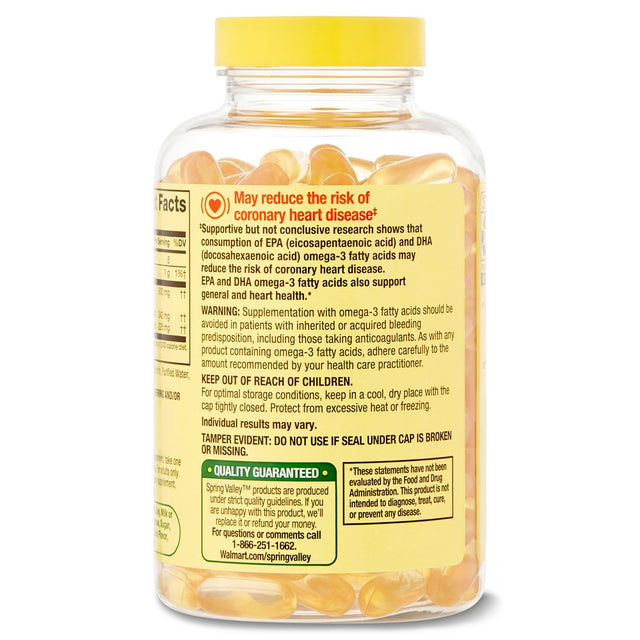 Spring Valley Daily Maintenance Omega-3 from Fish Oil Dietary Supplement, 500 Mg, 180 Count