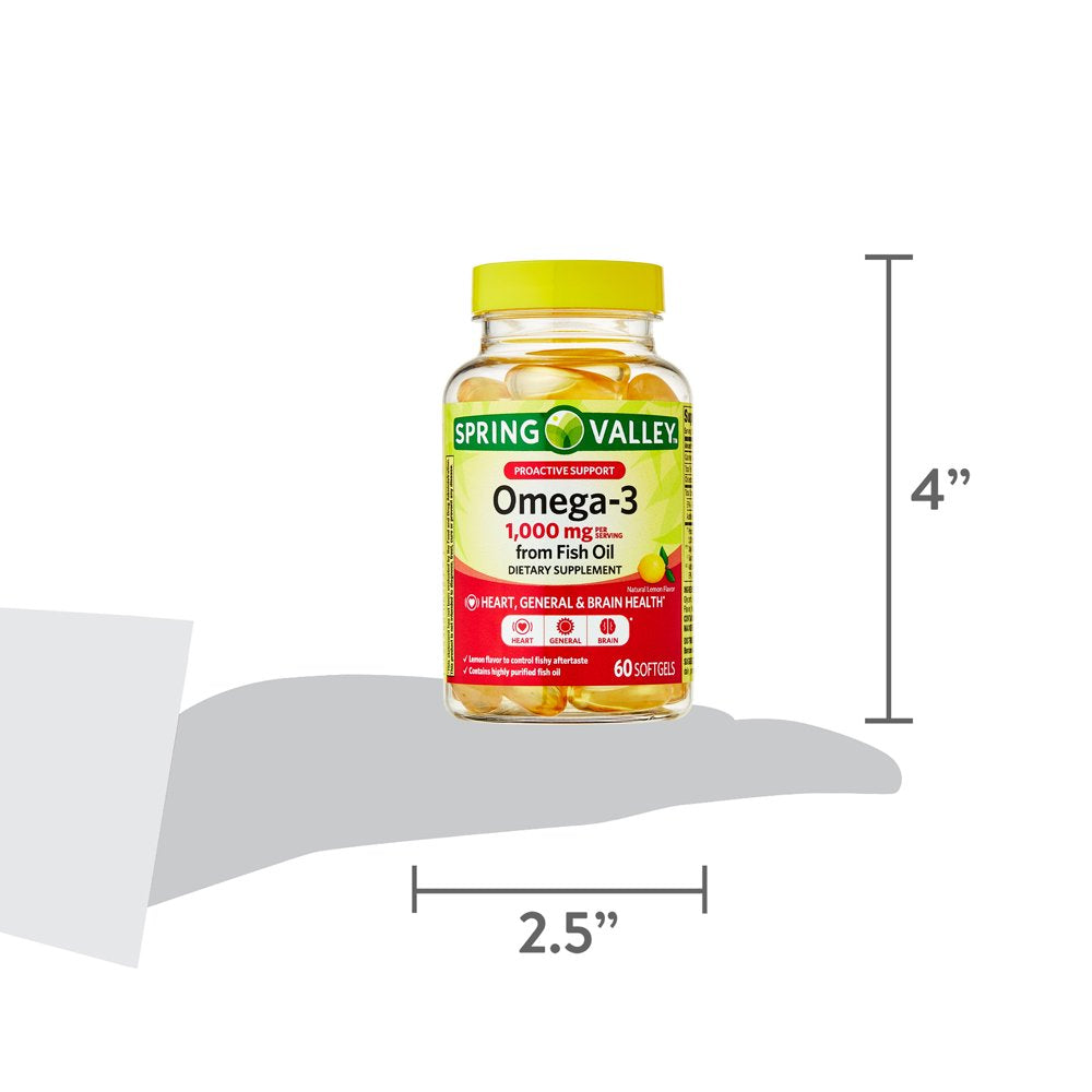 - Spring Valley Proactive Support Omega-3 from Fish Oil Heart General and Brain Health Dietary Supplement Softgels, 1000 mg, 60 Count