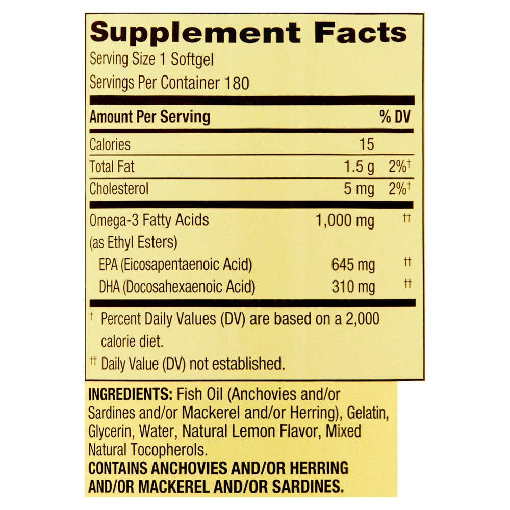 - Spring Valley Omega-3 Fish Oil Soft Gels, 1000 mg, 180 Count