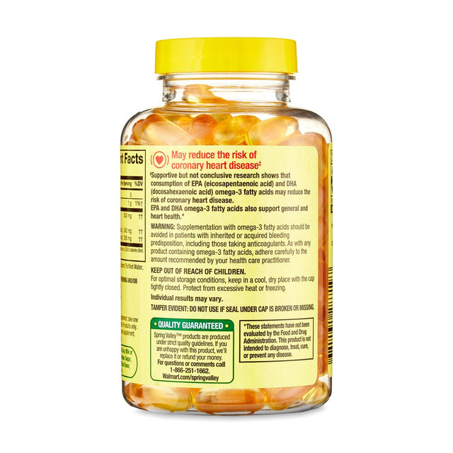 - Spring Valley Omega-3 Fish Oil Softgels, Lemon, 500 mg, 120 Count
