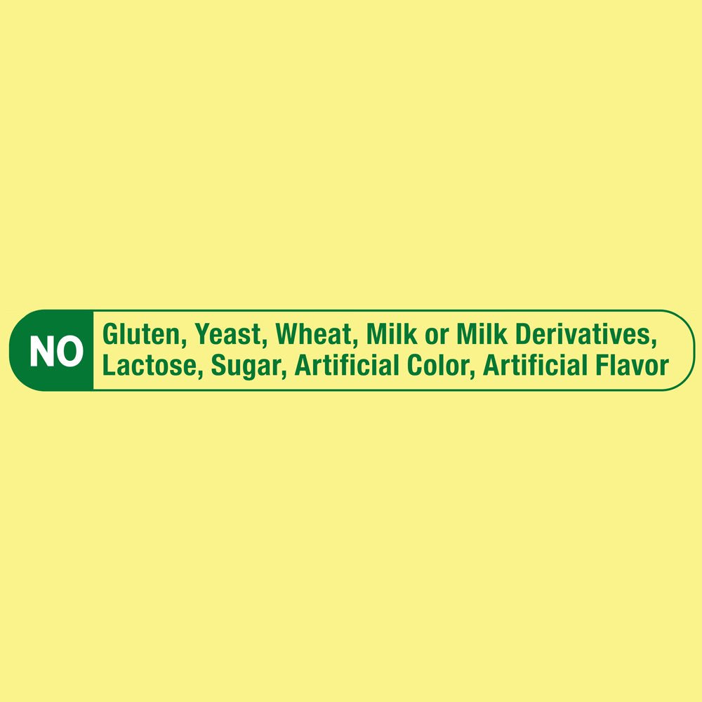 - No gluten, yeast, wheat, milk or milk derivatives, lactose, or sugar