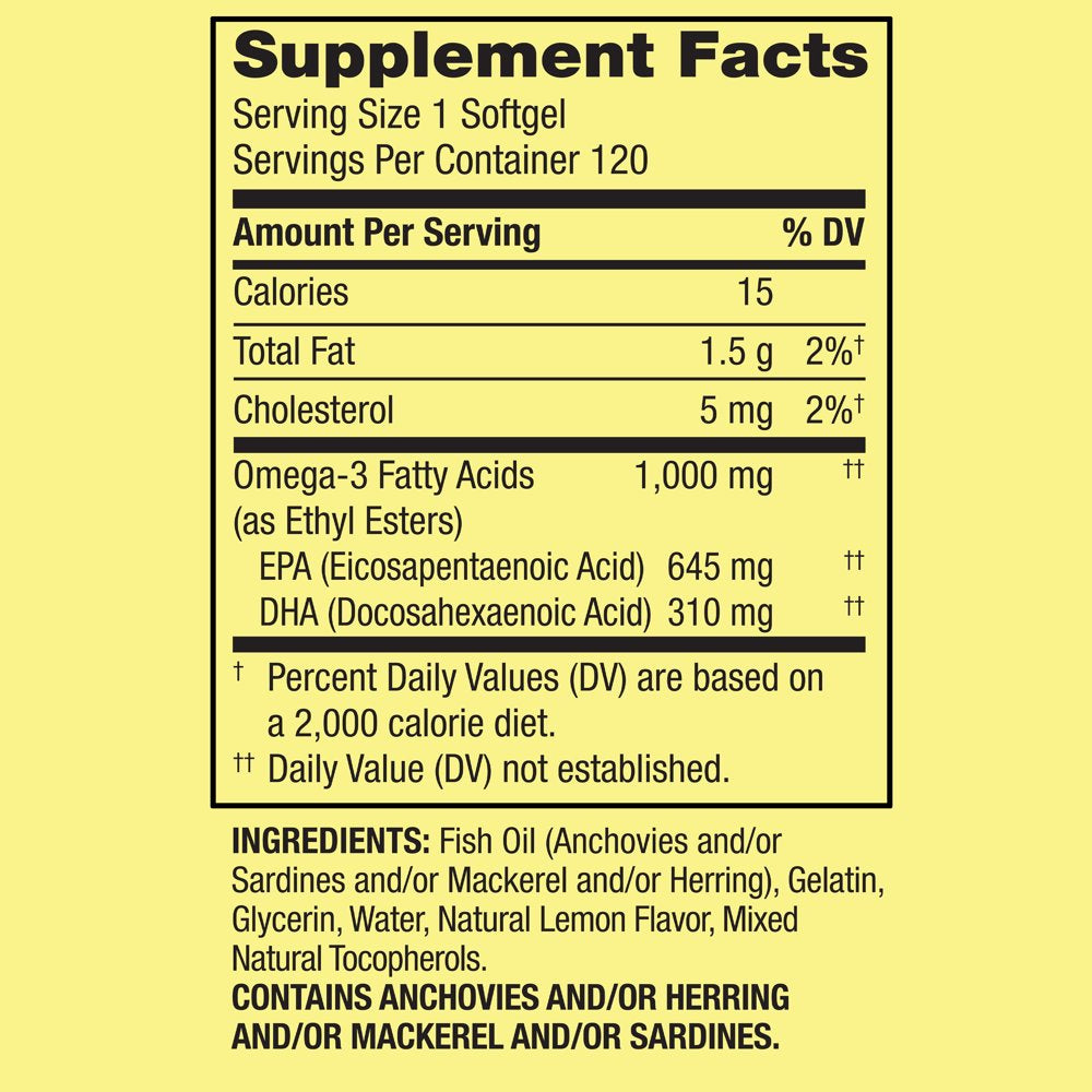 - Spring Valley Proactive Support Omega-3 from Fish Oil Heart General & Brain Health Dietary Supplement Softgels, 1000 mg, 120 Count