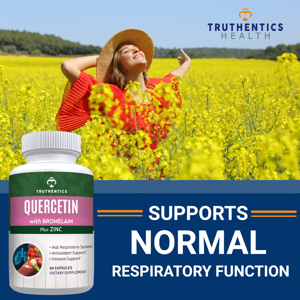 • QUERCETIN RICH SUPPLEMENT - Truthentics Quercetin Bromelain with Zinc Supplement contains 800 mg per serving of Quercetin, a flavonoid naturally found in fruits and vegetables, that has potent antioxidants and offers many health benefits. Zinc (50mg) and Bromelain (200mg) are added to help provide additional immune support and to help assist with bioavailability and Quercetin absorption.*