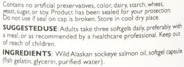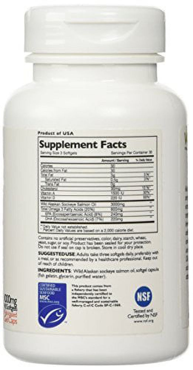 Vital Choice Wild Alaskan Sockeye Salmon Oil, Omega-3, 1000Mg, 90-Count