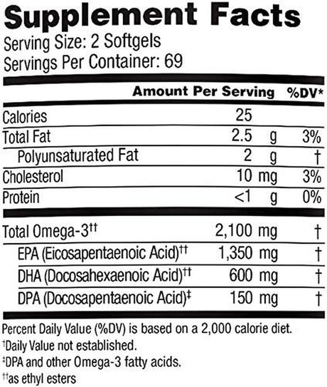 Puritan'S Pride Double Strength Omega-3 Fish Oil 1200 Mg/600 Mg 90 Softgels DHA 2 Pack