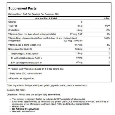 Spring Valley Omega-3 Fish Oil Softgels, Lemon, 500 Mg, 120 Count