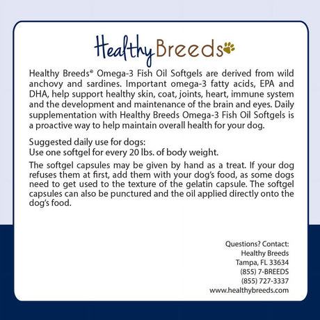 Healthy Breeds 840235185772 Miniature American Shepherd Omega-3 Fish Oil Softgels, 180 Count