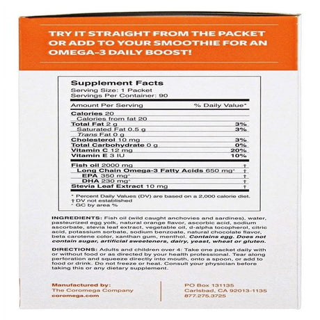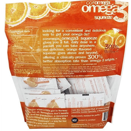 Coromega Omega-3 Squeeze Packets, Orange, 120 Ct
