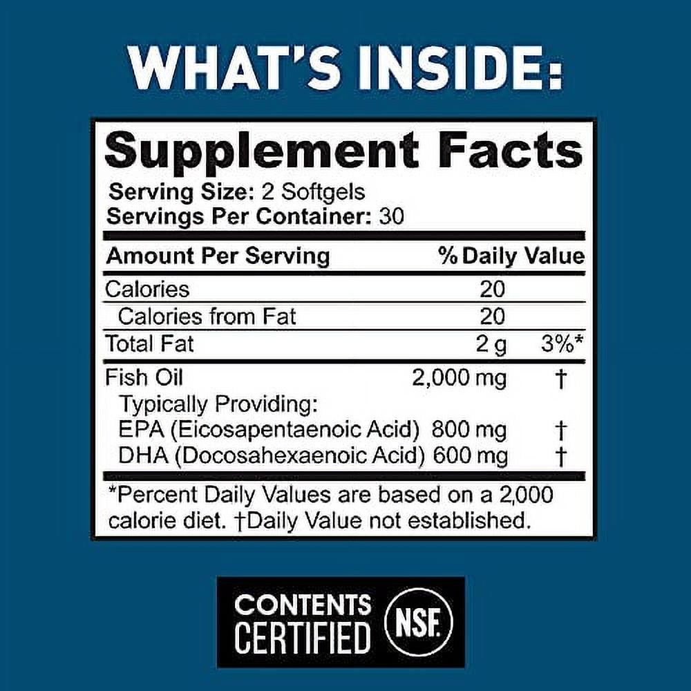 - Our 60 ct. Omega 3 Fish Oil capsules taken twice daily gives you a 30 day supply!