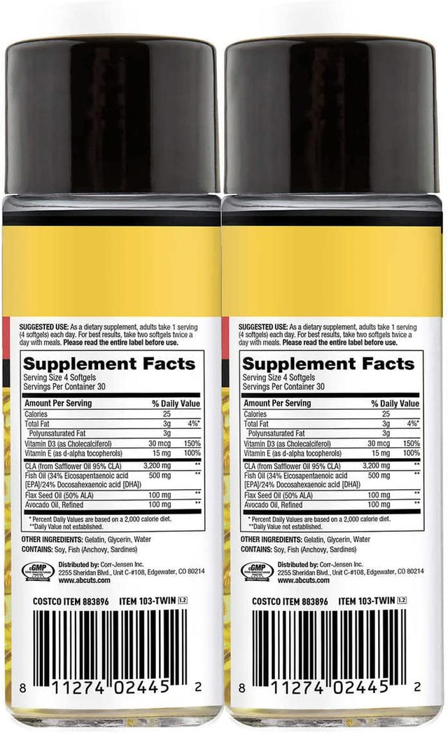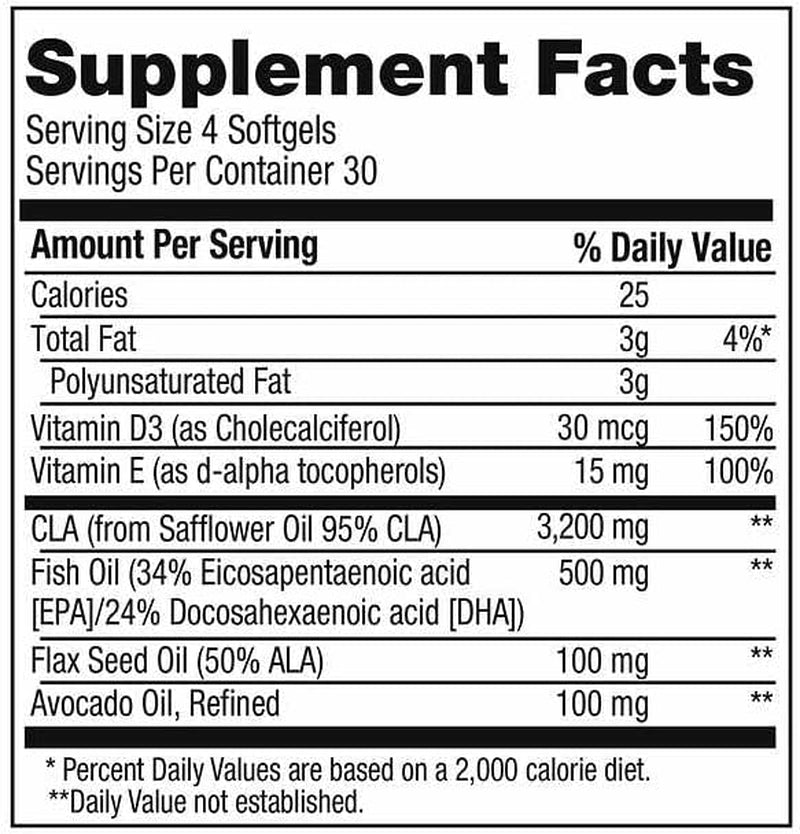 - Live Healthy: CLA Belly Fat Formula includes CLA, Omega-3, Flaxseed oil and Vitamin E to help support a healthy body composition; When combined with a balanced diet and regular exercise, Ab Cuts can help you reach your goals