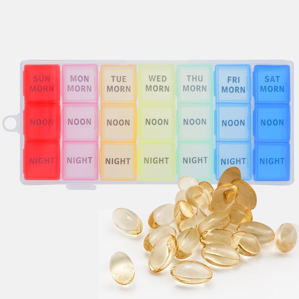 HEQUSIGNS Weekly Pill Organizer 3 Times a Day, 7 Day Pill Box Container, Portable Travel Medicine Case for Medication, Vitamin, Fish Oil, Supplements