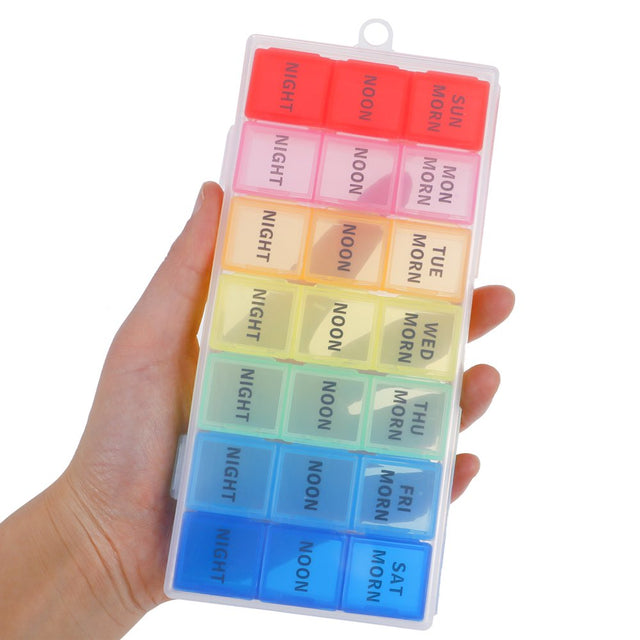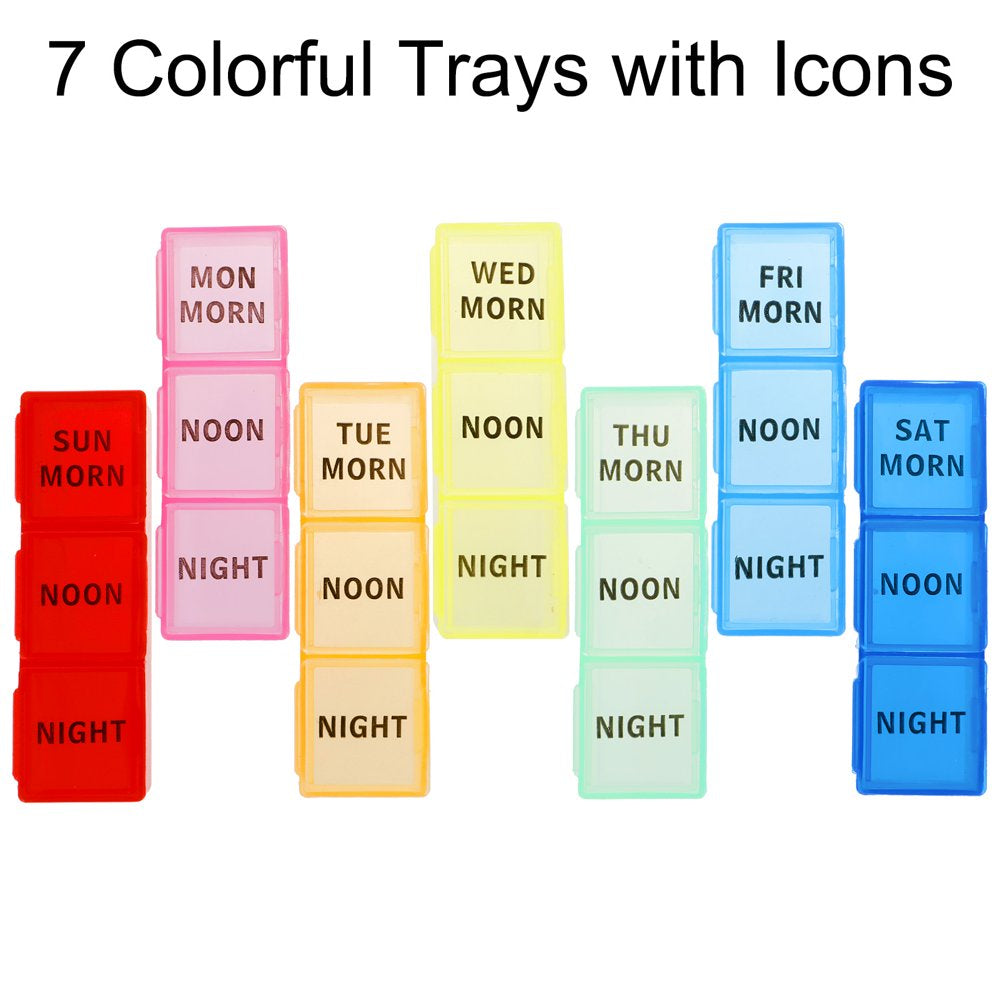 - Separately Separated Pill Box: This large pill organizer has 7 detachable boxes, each box has 3 independent cubic compartments, the smooth surface will not absorb any residue, avoid the previous pill residue and the current one Pill mix for easy cleaning