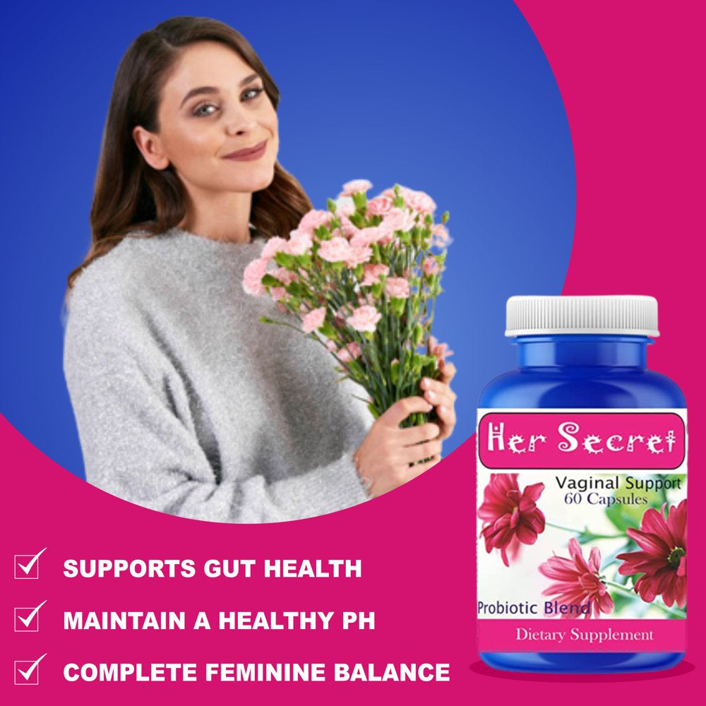 Her Secret Women Prebiotics 60 Pills Control Fishy Odor, Support Ph Balance 60 Capsules
