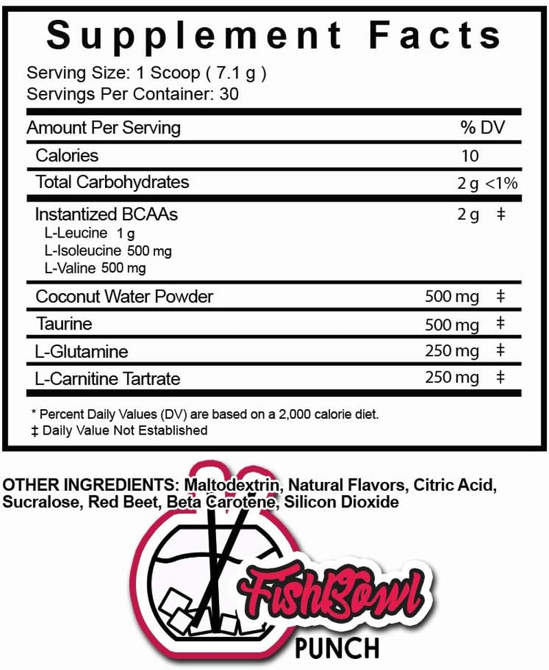 Hydroholic Amino Acids + Coconut Water - 30 Servings - Hydration and Bcaas Powder Drink Mix Supplement, Lemon Shakeup, Fishbowl Punch and Taffy Twist (Fishbowl Punch)