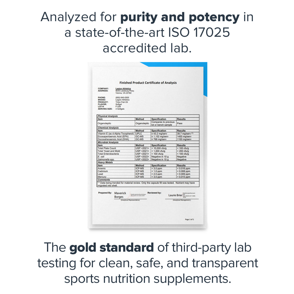 Legion Triton Triple Strength Omega 3 Fish Oil Softgels, 120 Count, 30 Servings