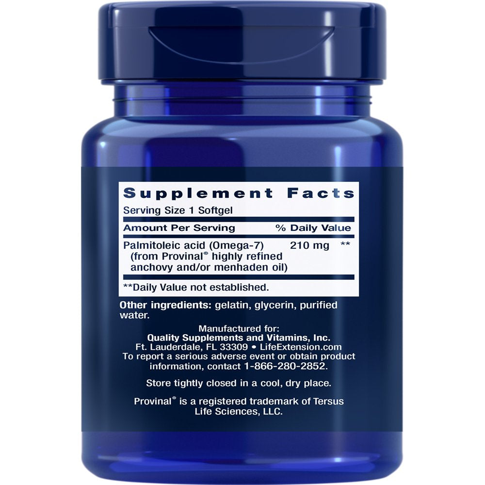 Life Extension Provinal Purified Omega-7 - Daily Essential Omega 7 Fatty Acids Supplement, Palmitoleic Acid Fish Oil for Heart Health & Inflammation Health Support - Gluten-Free, Non-Gmo - 30 Softgels