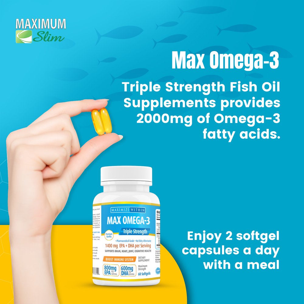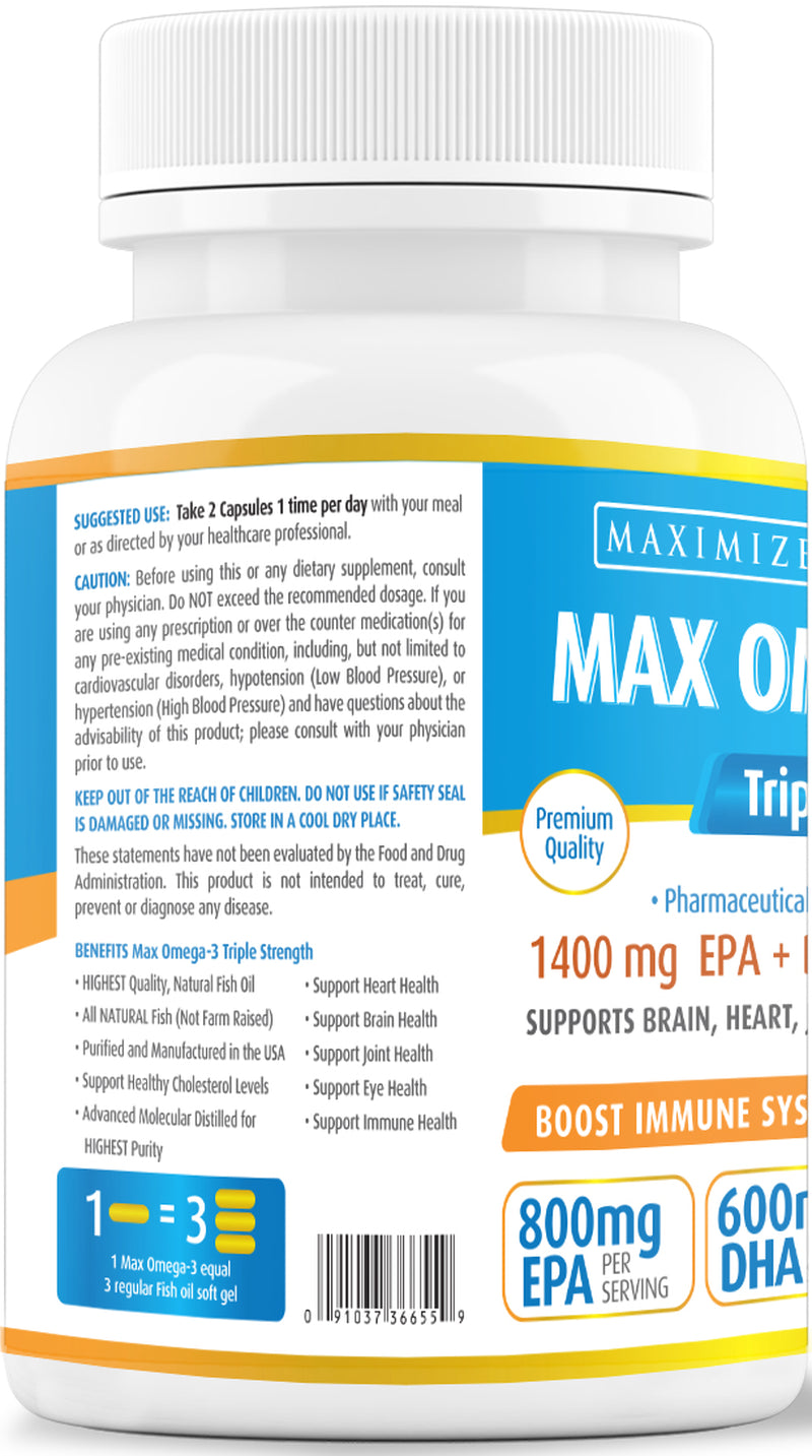 Max Omega 3 - Triple Strength Fish Oil Supplement, 60 Count