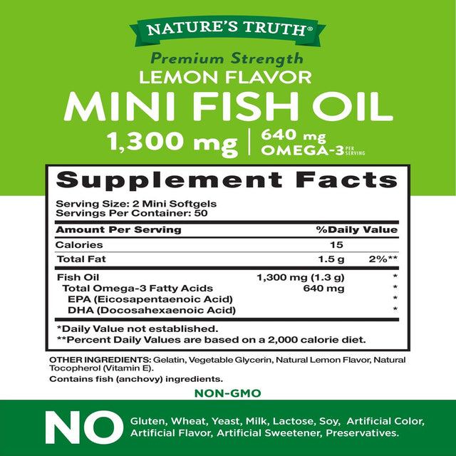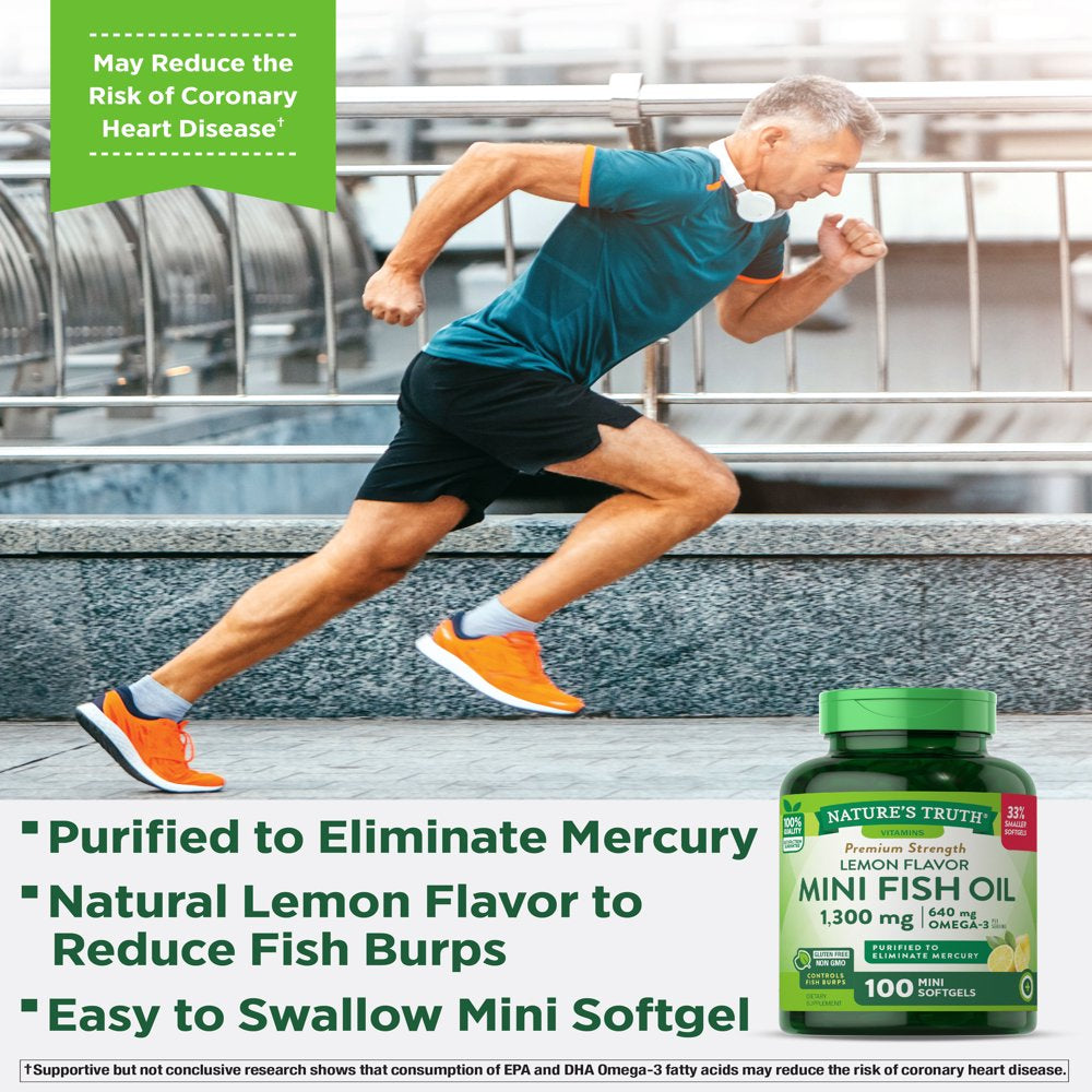 Mini Fish Oil Omega 3 | 1300 Mg | 100 Softgels | Burpless Lemon Flavor Pills | Non-Gmo. Gluten Free Supplement | by Nature'S Truth is backordered and will ship as soon as it is back in stock.