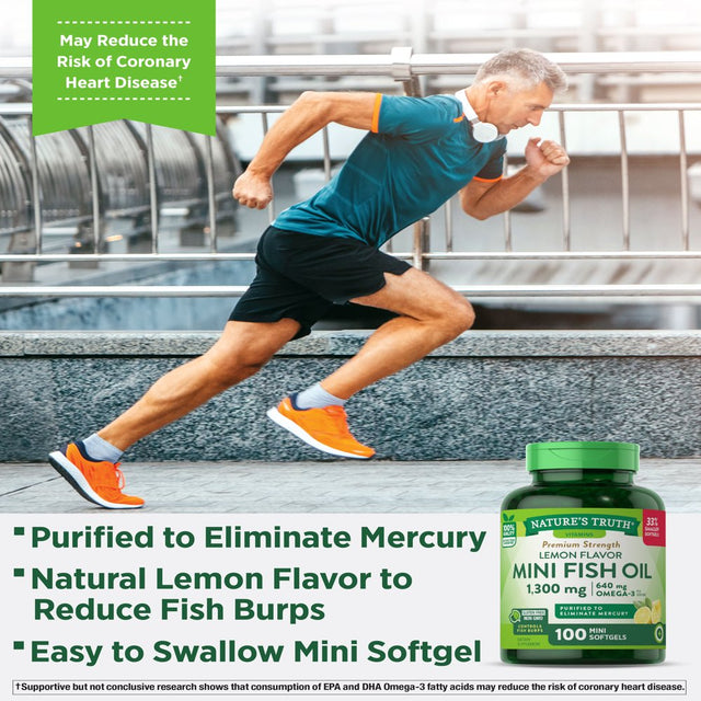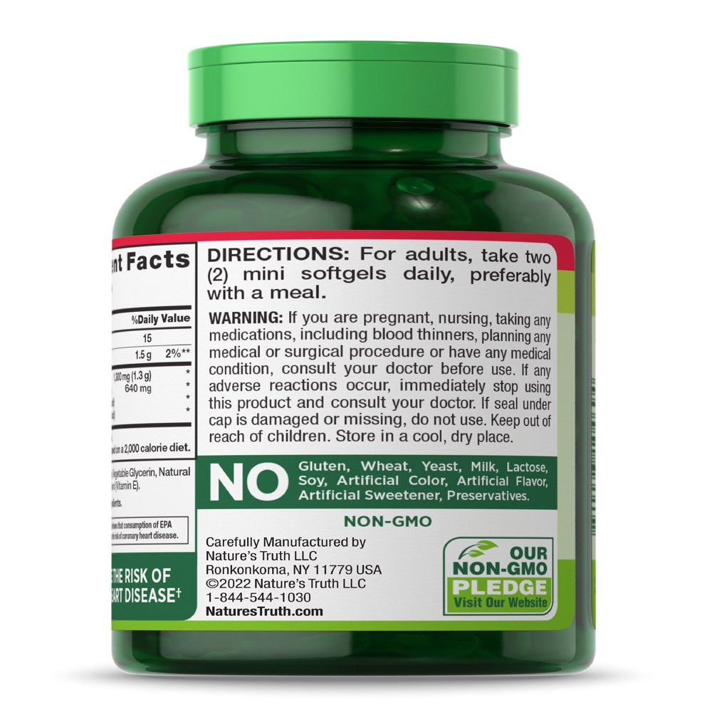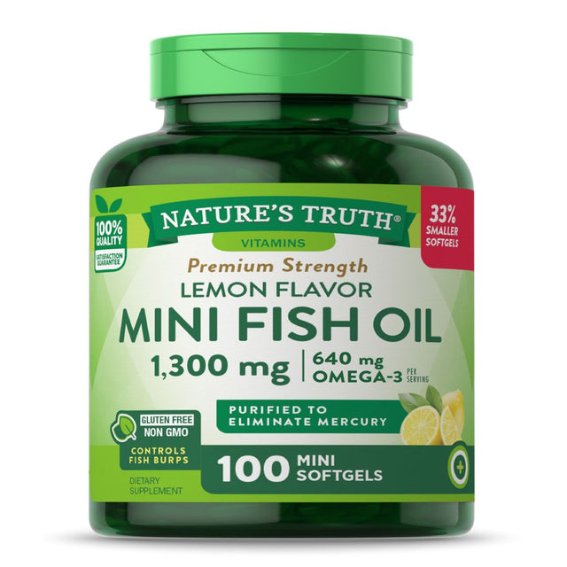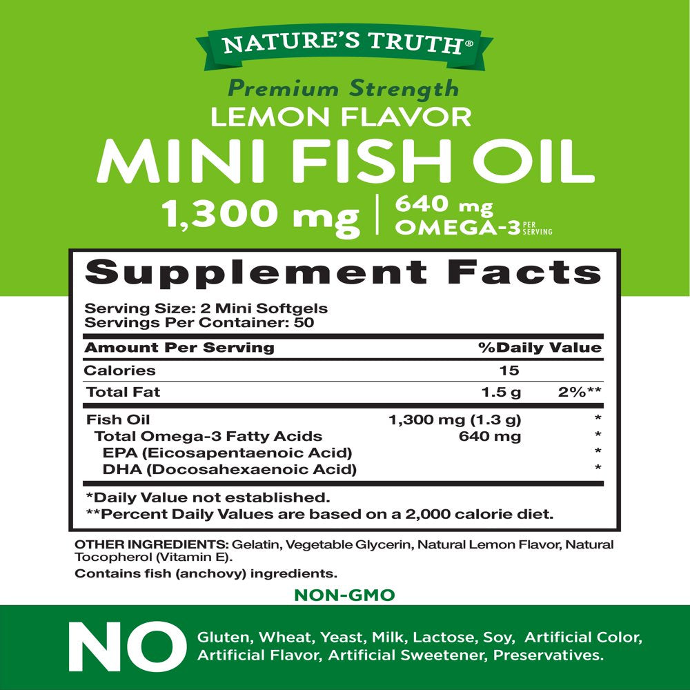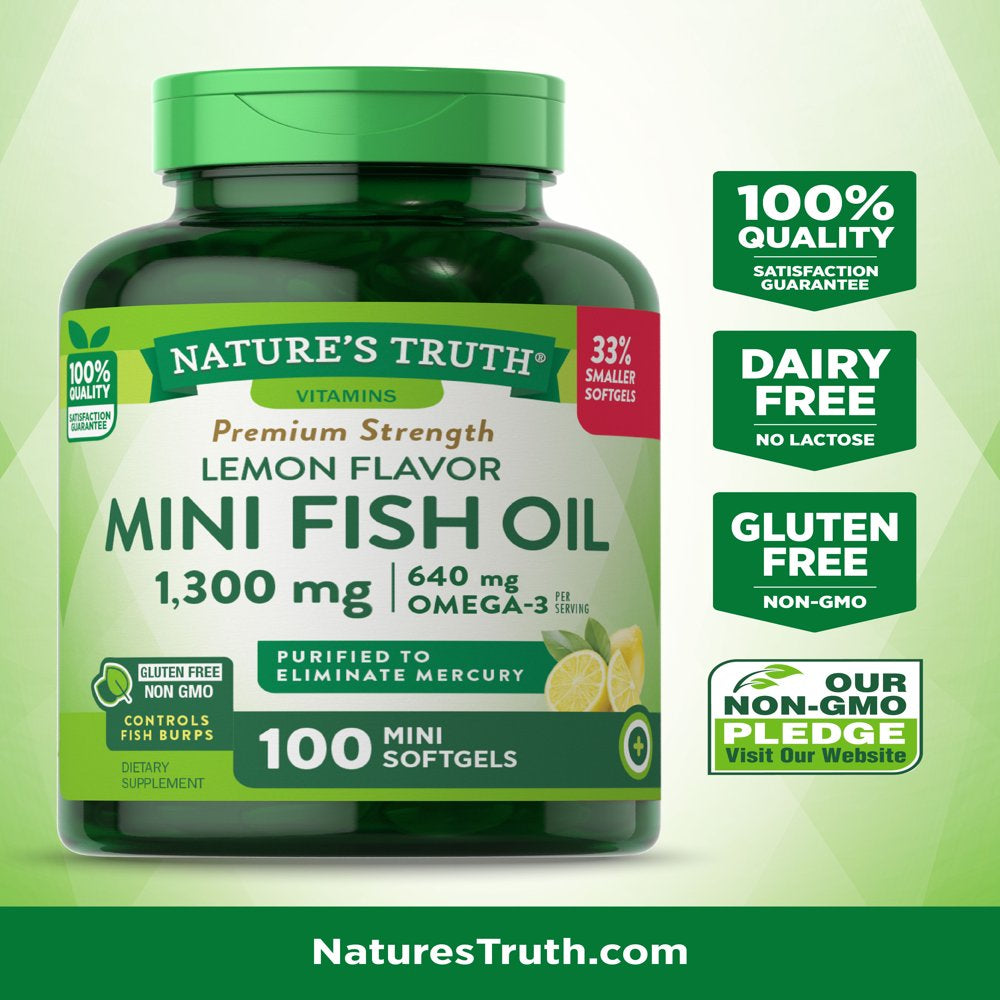 Mini Fish Oil Omega 3 | 1300 Mg | 100 Softgels | Burpless Lemon Flavor Pills | Non-Gmo. Gluten Free Supplement | by Nature'S Truth