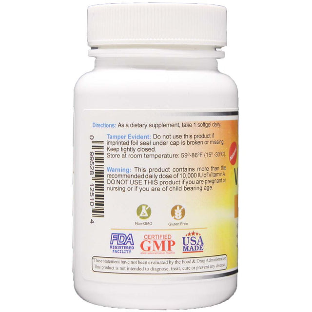 Natural Vitamin a Oil 25,000 IU, as Retinyl Palmitate, from Cod Fish Liver Oil – 100 Softgels