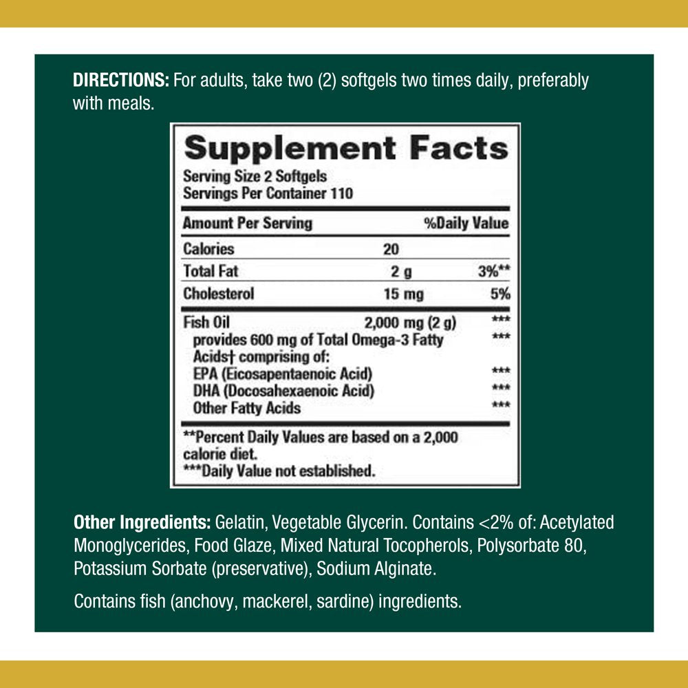Nature'S Bounty Fish Oil 1000 Mg Coated Softgels 440 Count (2X220Ct)