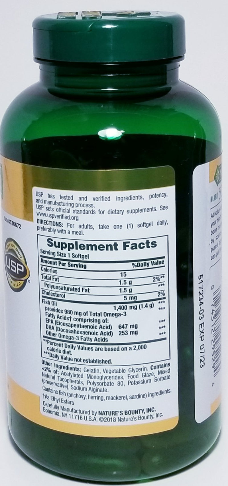 Nature's Bounty Fish Oil 1400 mg, 130 Coated Softgels