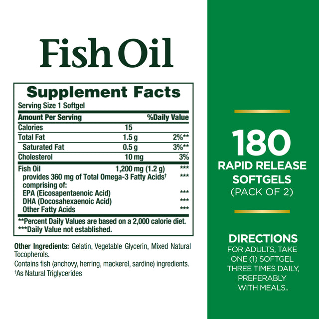 Nature'S Bounty Fish Oil Softgels, 1200Mg, 180 Ct, 2 Pack