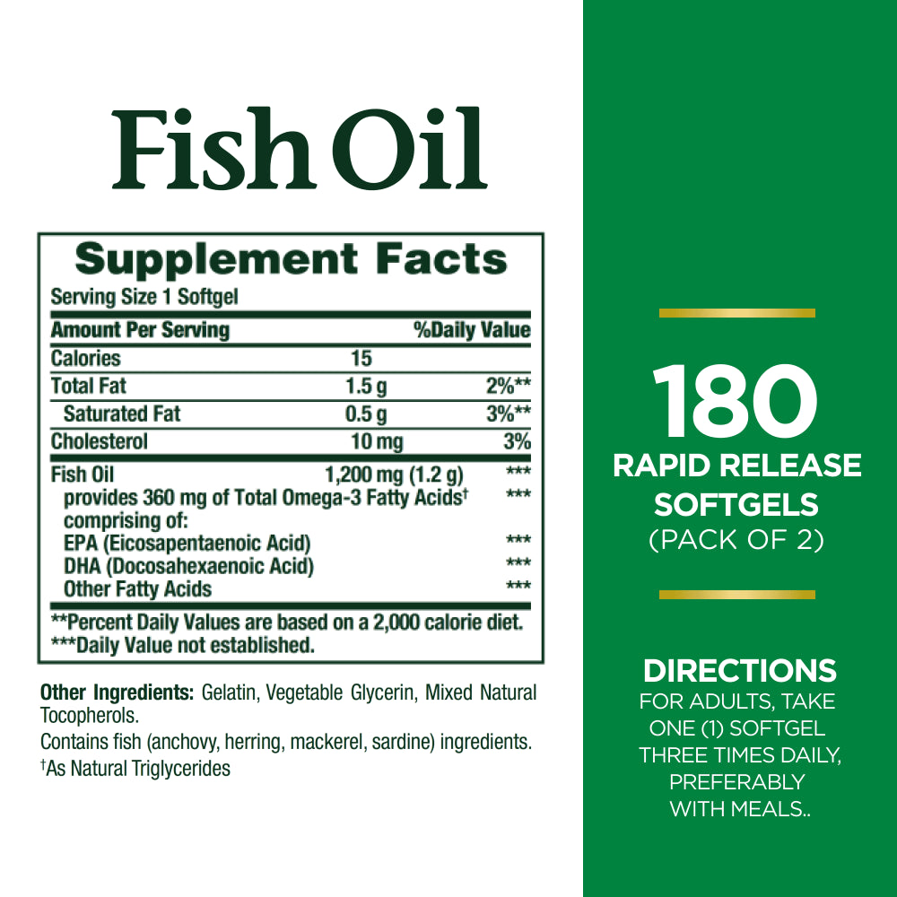 • Nature's Bounty Fish Oil Softgels, 1200Mg, 180 Ct, 2 Pack
