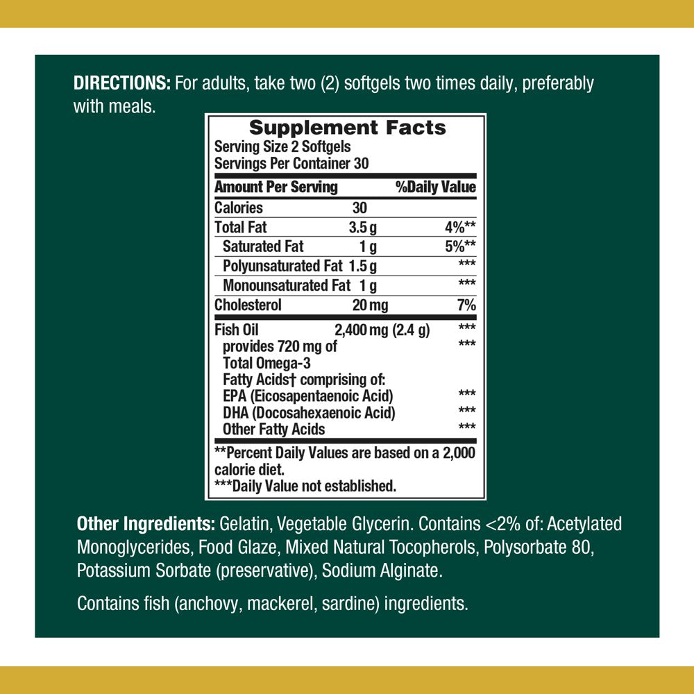 - Nature's Bounty Fish Oil With Omega 3 Softgels, 1200 Mg, 60 Ct: