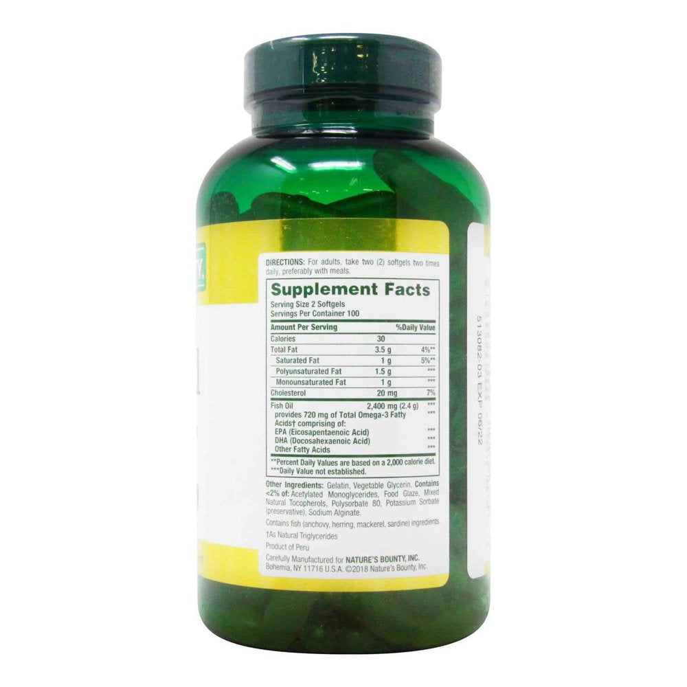 Natures Bounty Odor-Less Fish Oil 1,200 Mg - 200 Coated Softgels