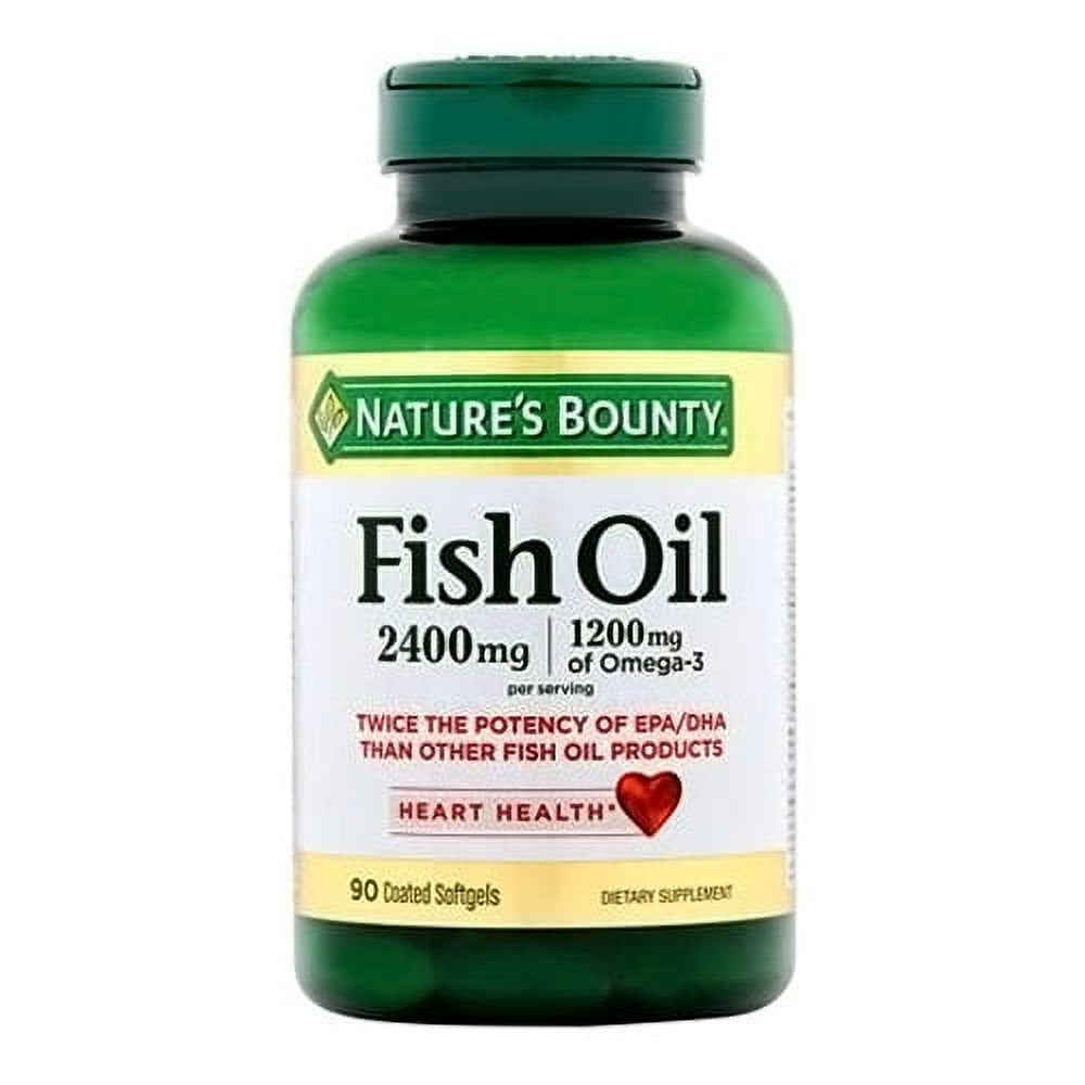 Nature's Bounty Omega-3 Fish Oil Coated Softgels, 2,400 mg, 90 Ct (VB-1a)