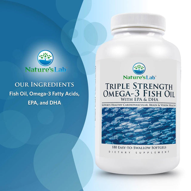 Nature'S Lab Triple Strength Omega-3 Fish Oil with EPA & DHA - 180 Softgels (3 Month Supply)- Supports Healthy Brain Function, Cognitive Health & Circulation*