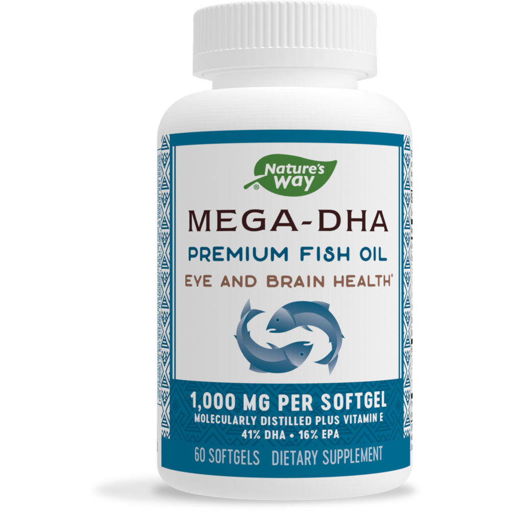 Nature's Way MEGA-DHA Premium Fish Oil with Vitamin E, 1000 mg, 60 Count.