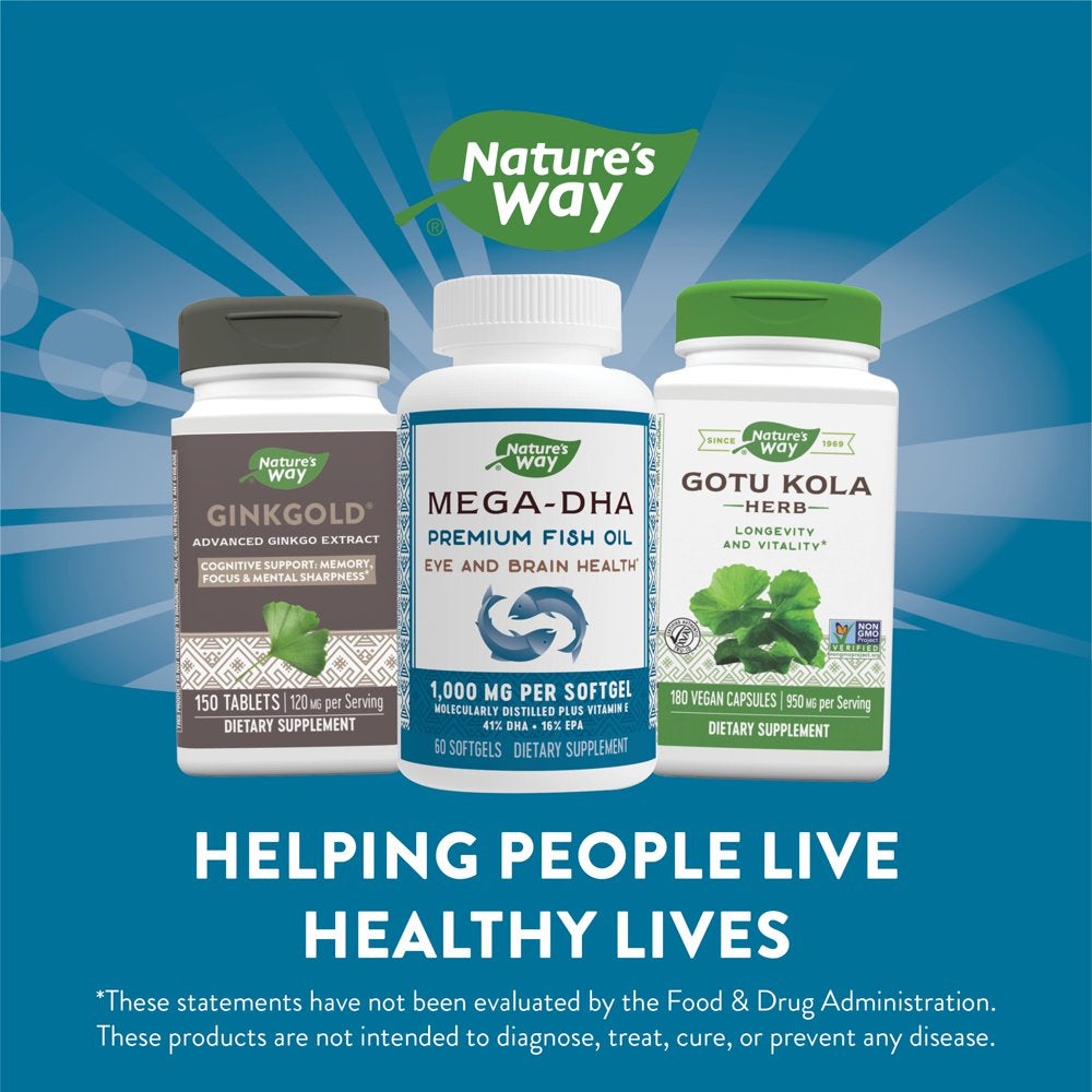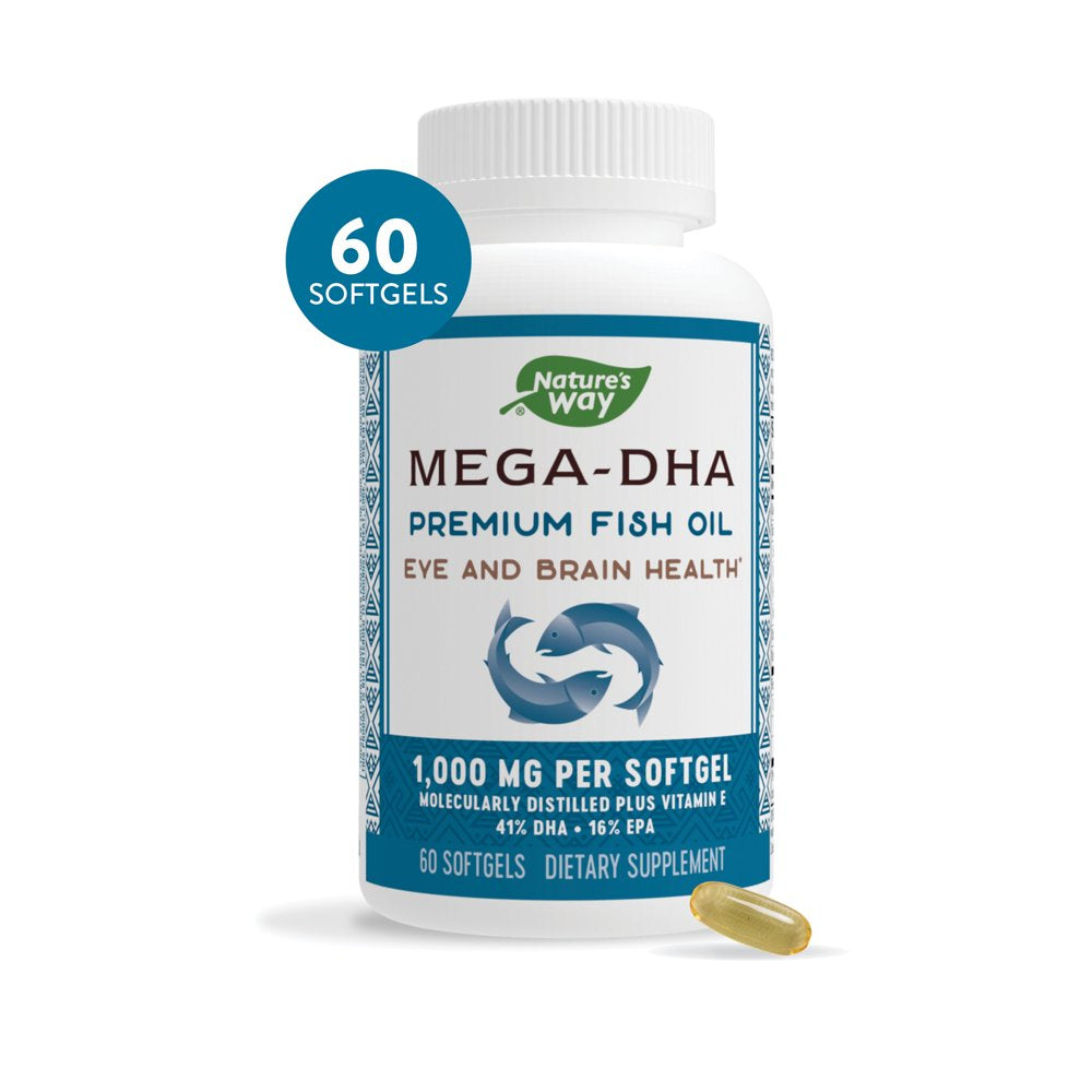 Nature'S Way MEGA-DHA Premium Fish Oil with Vitamin E, 1000 Mg, 60 Count
